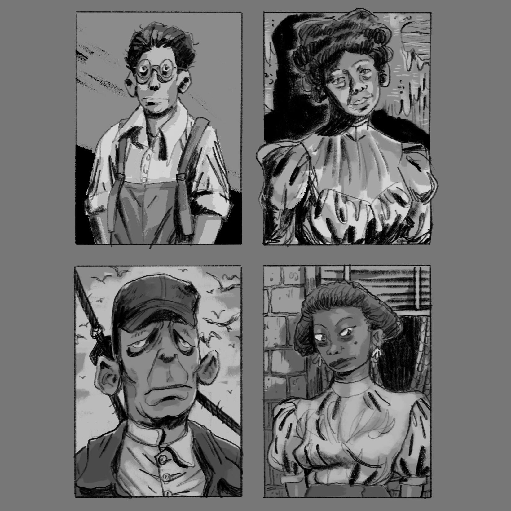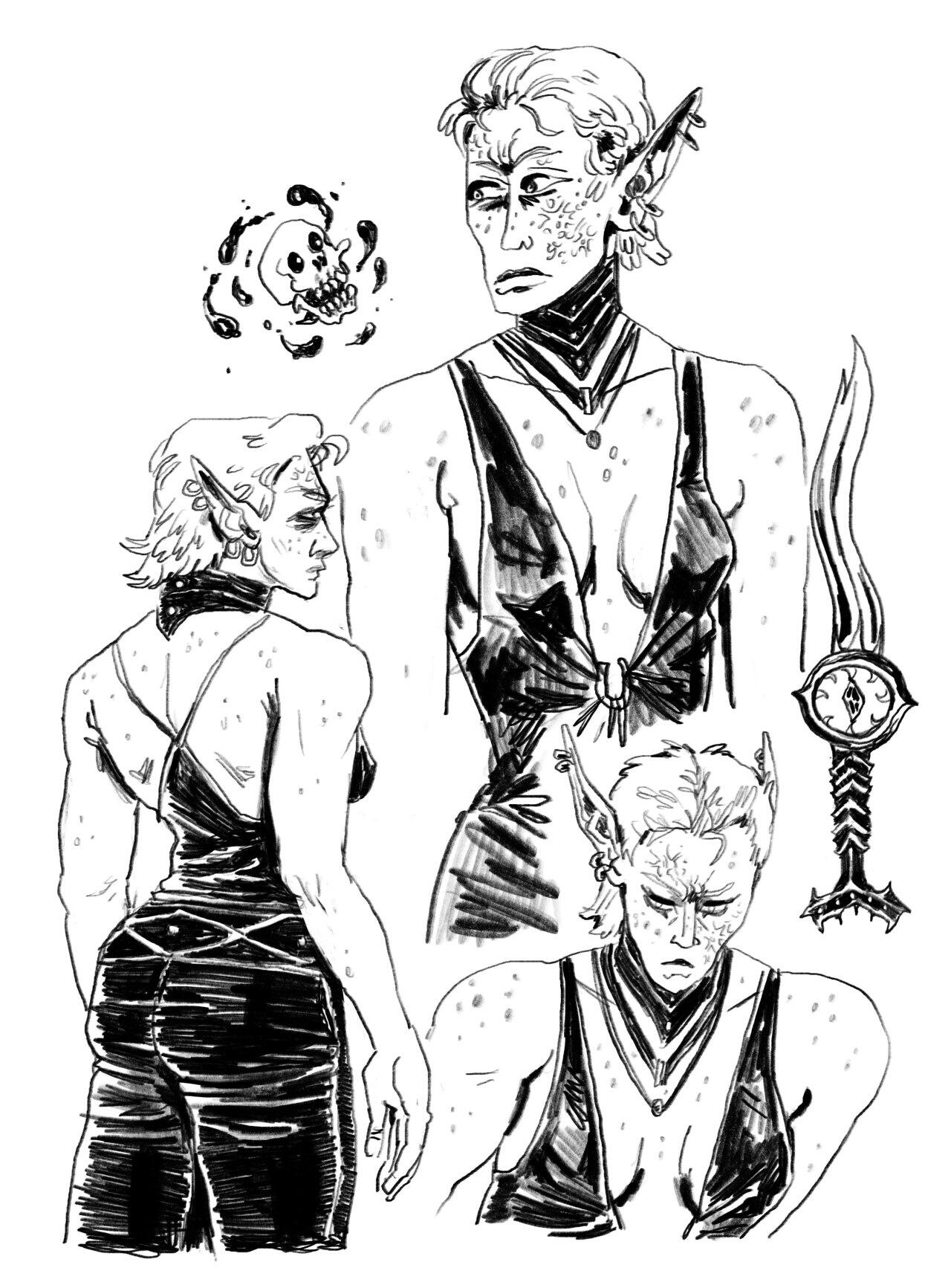 £30. A medley of sketches with multiple expressions & poses, or one more detailed pose if that's your preference. Monochrome or limited colours. Can feature one character or multiple.This is a fast & loose option, so throw me your character and a vibe and I'll do you something like the sketches to the left.You can request small revisions at the end, but no major ones.